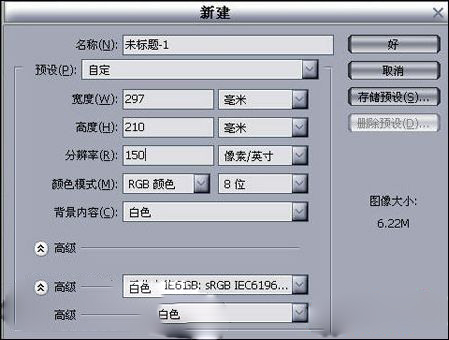 一、照片修復老規矩,新建文件,可以設A4大小。當然做練習的時候我們可以把像素設低點,這樣電腦運做起來相對來的快點。如圖1