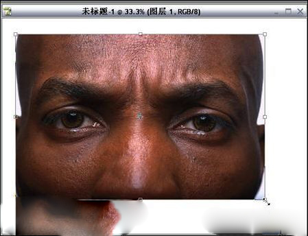 三、我們將素材圖片直接拖入建好的文件背景里,對其進行 CTRL+T自由變換,同時按住shift+alt等比例變換,將照片拖滿。如圖2-3。