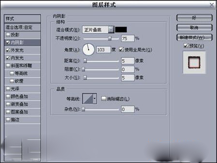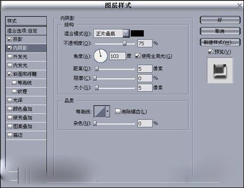 十、現在制作玻璃管與臉部的交接處與投影的處理。先建圖層用選框工具選擇交接點,填充黑色,到樣式中進行處理成陷入的效果,如圖14-18