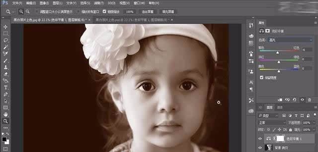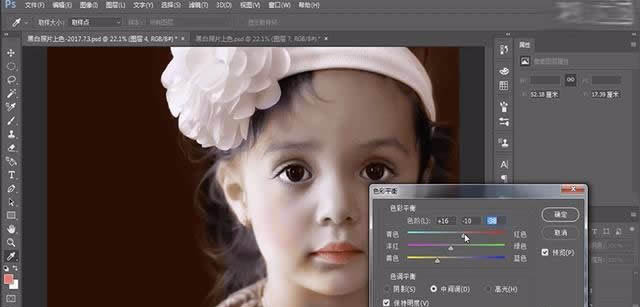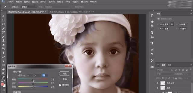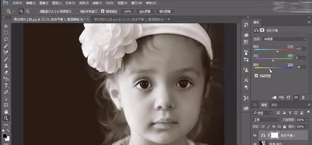 2、給圖片添加色彩平衡,數值參考視頻。整體調整照片的色調。