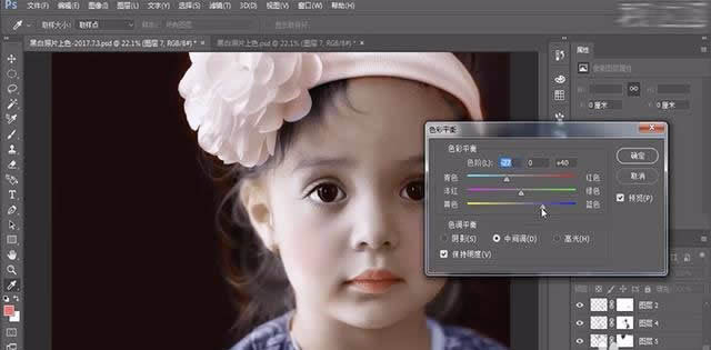 3、分別調整色彩平衡中的陰影和高光