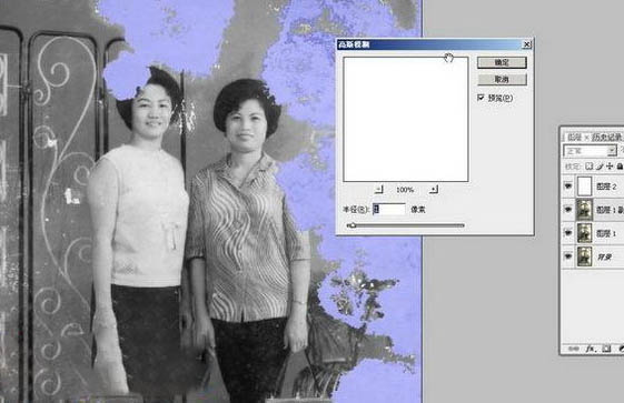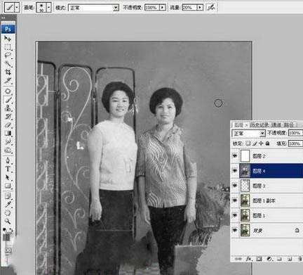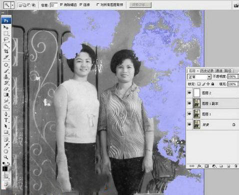 本教程介紹局部掉色反白的照片的修復方法。大致過程:先把照片去色處理,然后把反白的部分選取出來調成跟背景一致的顏色。再用畫筆把殘缺的部分補上去包括人物部分。如果照片中有部分的物品無法修復,可以設法去找類似的物品換掉。