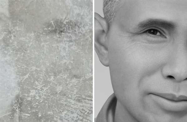 修復干凈后,以定出的形狀為基礎,使用素材輔助添加細節信息,提高自然程度,統一畫面清晰度,完成這個照片修復。放大細節看下面:
