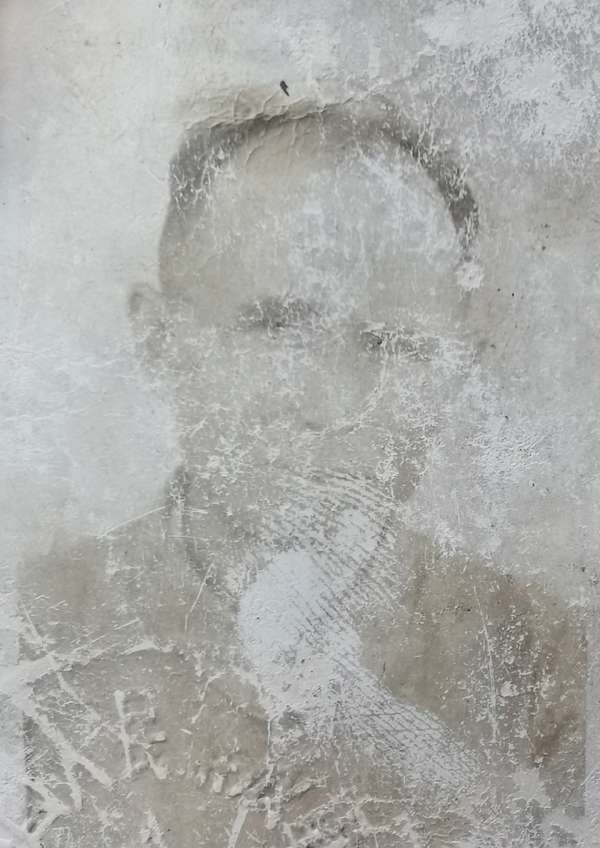 這種破損模糊嚴重的照片修復,最大的難點是抓不住人物特點,很容易就做變形,特征沒辦法表現出來,就會不像,所以,為了盡量不影響原始照片特征,首先去掉破損的白塊,下圖: