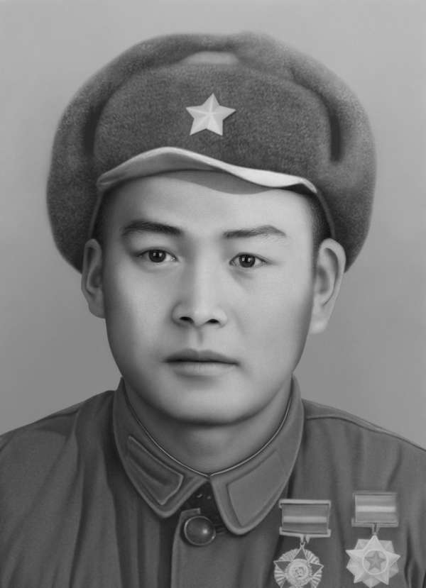 通過素材輔助、繪制、優(yōu)化調(diào)整,完成這個模糊照片修復,上圖。整體畫面清晰自然,保留原始照片特征,衣服部分輕微改動使整體畫面協(xié)調(diào),添加了領(lǐng)章,胸章畫清晰(右胸章畫的痕跡有點明顯了),畫質(zhì)、清晰度都有了質(zhì)的提高,最終效果能滿足放大16寸原始照片的要求,而且放大后細節(jié)更好。