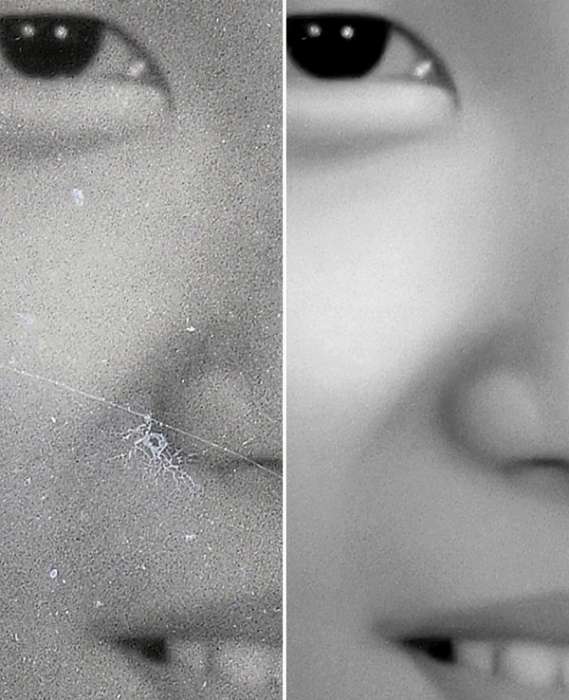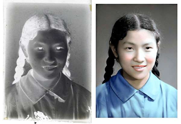 看下圖,左邊為原始底片翻拍出來的效果,右邊為轉換成正常電子照片再上色的效果: